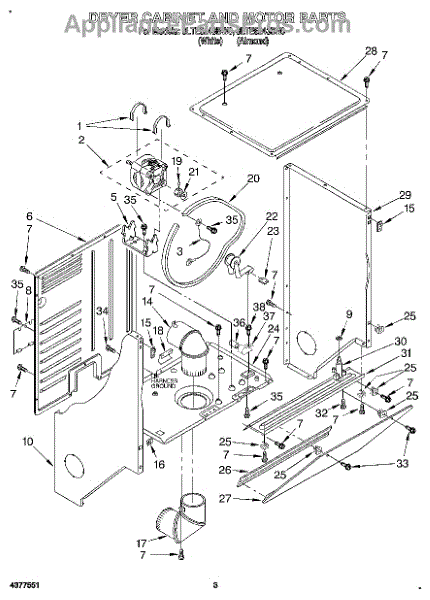 Parts for Whirlpool 3LTE5243BW0: 03 - Dryer Cabinet And Motor Parts
