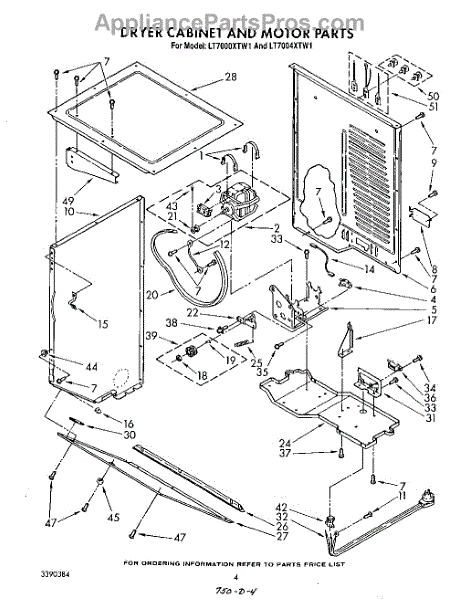 Parts for Whirlpool LT7000XTG1: 04 - Dryer Cabinet And Motor Parts