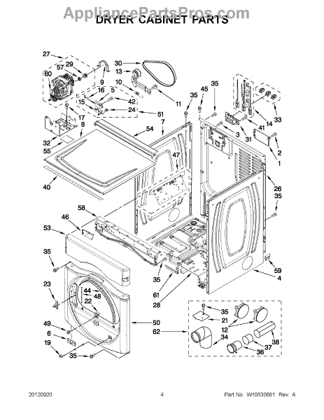 This exhaust pipe routes exhaust air from the appliance to the home vent, restoring proper airflow for safe, efficient operation. Use when the original pipe is cracked, bent, or leaking. What it does: