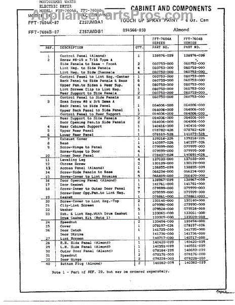 Parts for Frigidaire 7604B: Dryer Console / Controls Page 2 Parts
