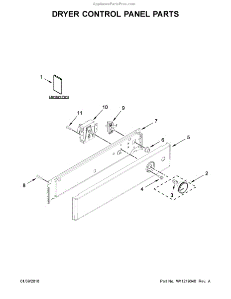This control panel is the appliance's front user interface that lets you select cycles, options, and settings. It replaces a failed or unresponsive panel to restore normal control and display feedback for the unit. What it does: