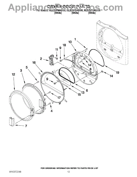 Parts for Maytag MLE20PDAGW0: 07 - Dryer Door Parts