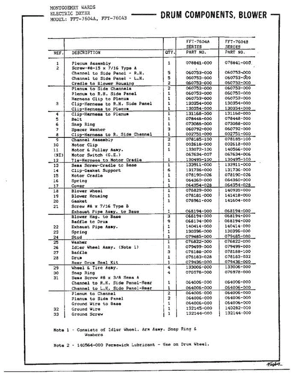 Parts for Frigidaire 7604B: Dryer Drum Components / Blower Page 2 Parts