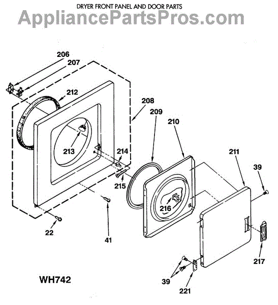 Parts for Ge WSM2420SDZWW: 02 - Dryer Front Panel And Door Parts