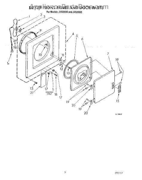 Parts for Whirlpool JV020080: 03 - Dryer Front Panel And Door Parts