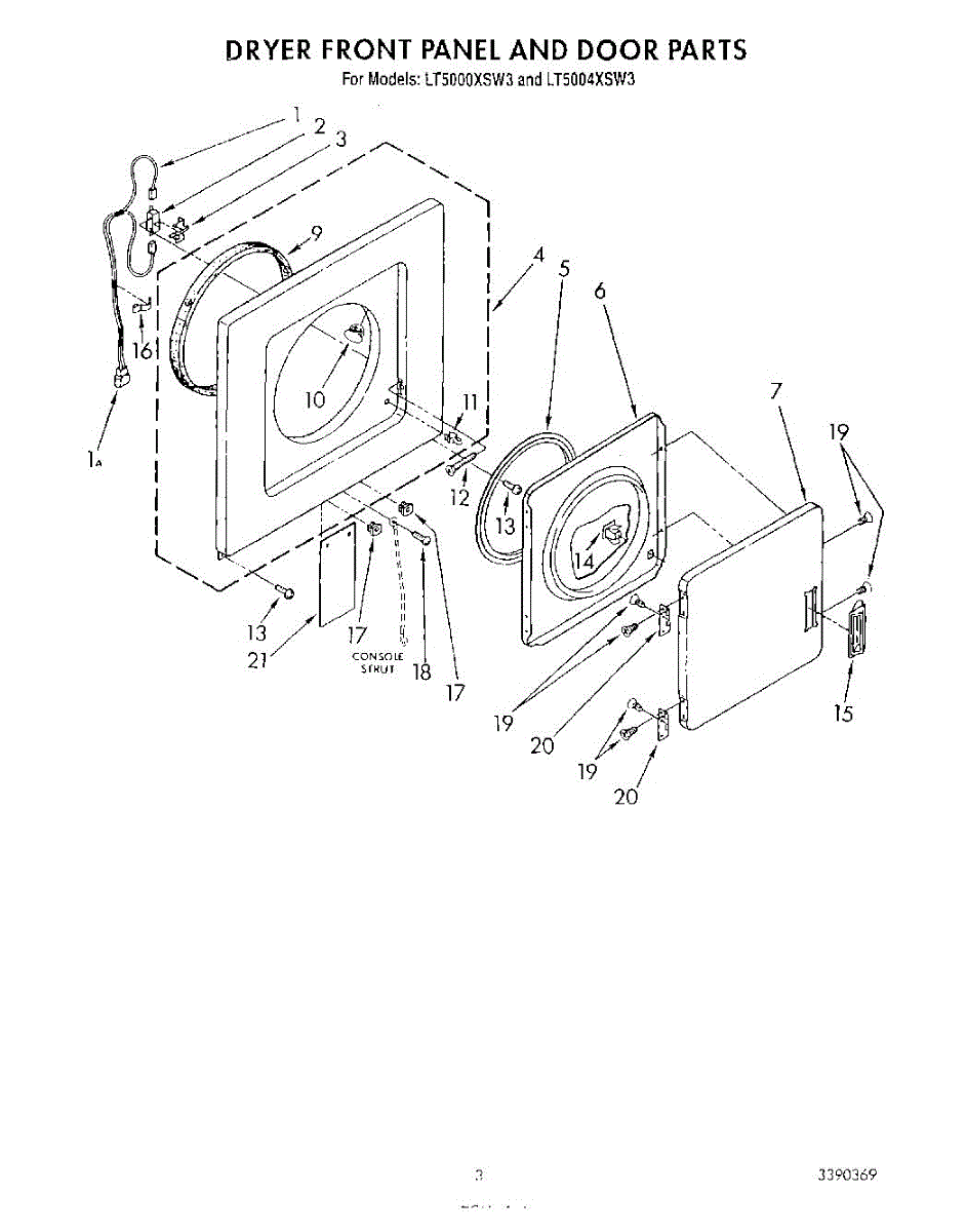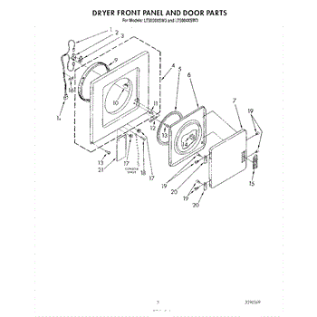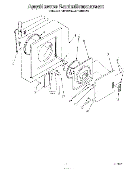 Parts for Whirlpool LT5000XSW3: 03 - Dryer Front Panel And Door Parts