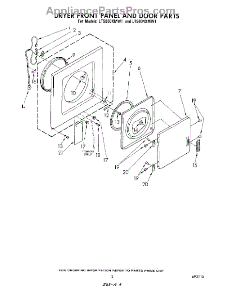 Parts for Whirlpool LT5004XMW1: 03 - Dryer Front Panel And Door Parts