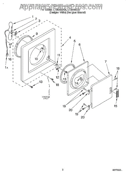Parts for Whirlpool LTE5243DQ0: 02 - Dryer Front Panel And Door Parts