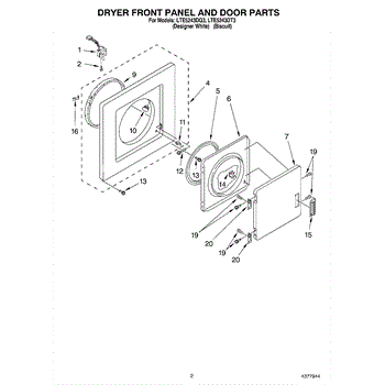 Parts for Whirlpool LTE5243DT3: 02 - Dryer Front Panel And Door Parts