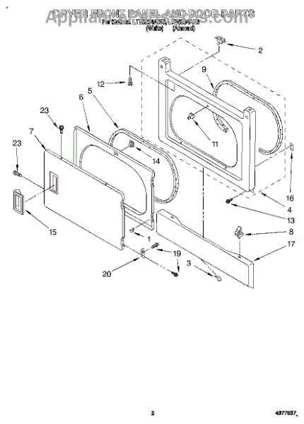 Parts for Whirlpool LTE6234AN3: 02 - Dryer Front Panel And Door Parts