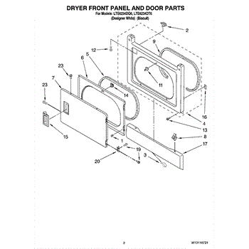 Parts for Whirlpool LTE6234DQ6: 02 - Dryer Front Panel And Door Parts
