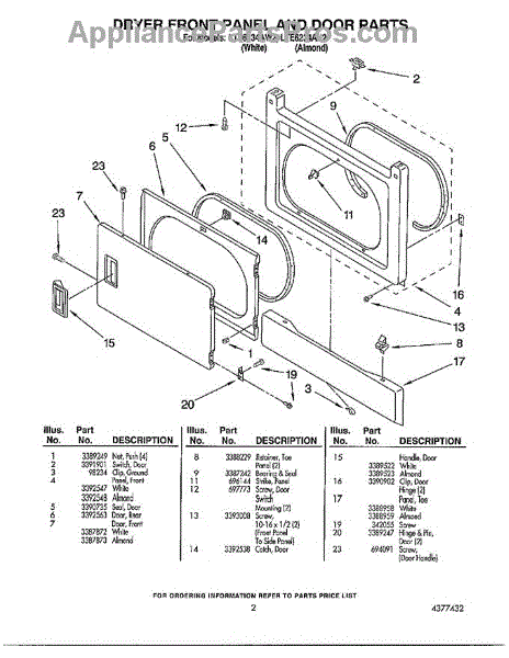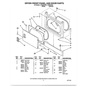 Parts for Whirlpool LTE6243AW2: Dryer Front Panel And Door Parts