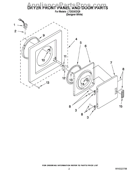 Parts for Whirlpool LTG5243DQ9: 02 - Dryer Front Panel And Door Parts