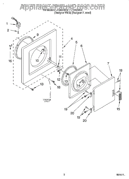 Parts for Whirlpool LTG5243DZ1: 02 - Dryer Front Panel And Door Parts