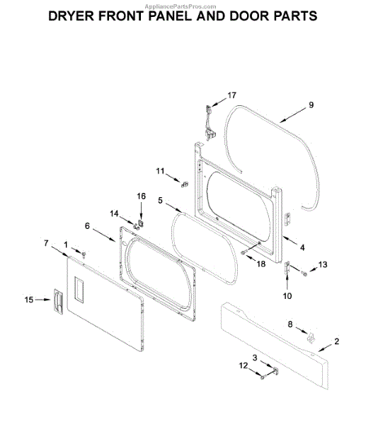 The Door Catch Bezel is an OEM replacement part for Whirlpool electric and gas dryers. It is located on the inner door frame and acts as the latching mechanism.