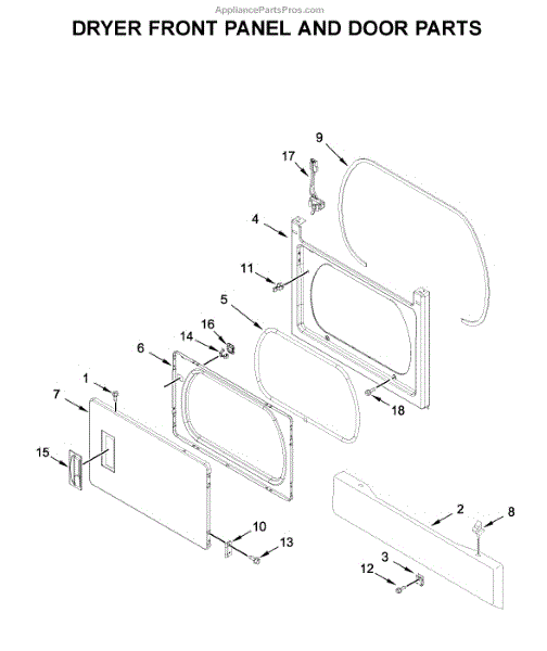 The Door Catch Bezel is an OEM replacement part for Whirlpool electric and gas dryers. It is located on the inner door frame and acts as the latching mechanism.