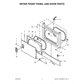 The Door Catch Bezel is an OEM replacement part for Whirlpool electric and gas dryers. It is located on the inner door frame and acts as the latching mechanism.