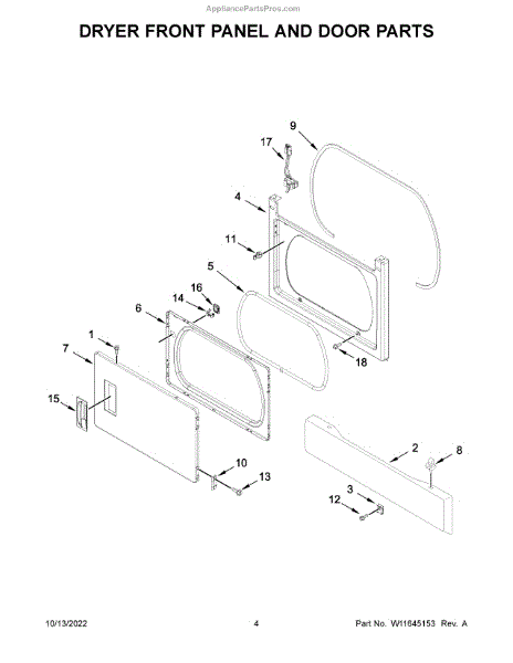 The Door Catch Bezel is an OEM replacement part for Whirlpool electric and gas dryers. It is located on the inner door frame and acts as the latching mechanism.