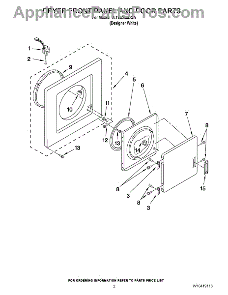 Parts for Whirlpool YLTE5243DQA: 02 - Dryer Front Panel And Door Parts
