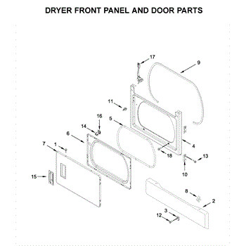 The Door Catch Bezel is an OEM replacement part for Whirlpool electric and gas dryers. It is located on the inner door frame and acts as the latching mechanism.