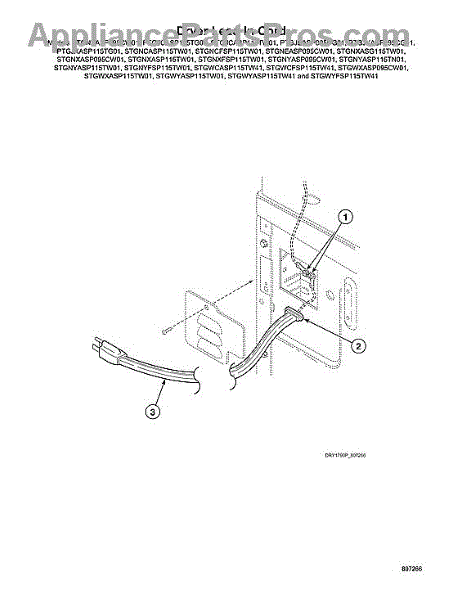 A replacement cord lead-in that routes incoming power into the appliance and provides a secure connection point for the main wiring. Restores reliable electrical feed and helps eliminate intermittent power or no-power issues. What it does: