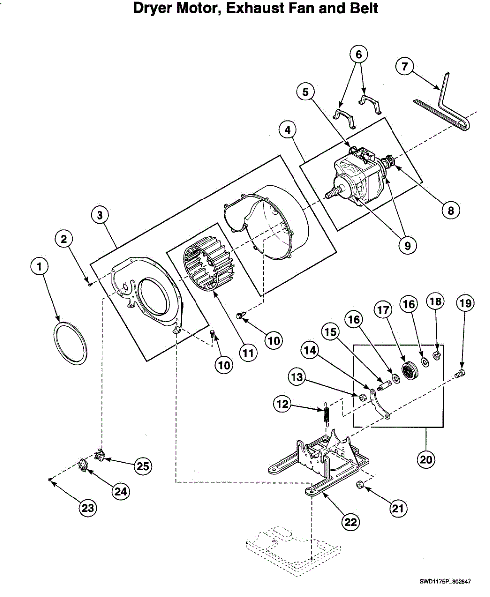 Over time, the idler assembly can wear out due to friction, heavy use, or lack of lubrication. Bearings may seize, or the wheel can become damaged, leading to reduced tension and compromised dryer performance.