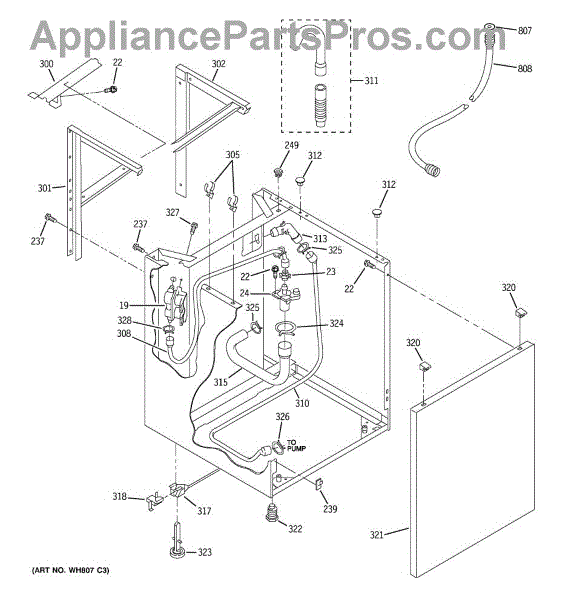 Parts for Ge WSM2420D2WW: 02 - Dryer Support & Washer Cabinet Parts