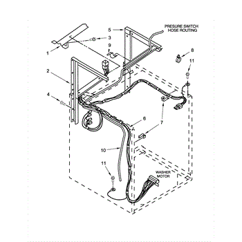 This is a clear plastic hose that runs from the water level switch to the bottom of the tub.