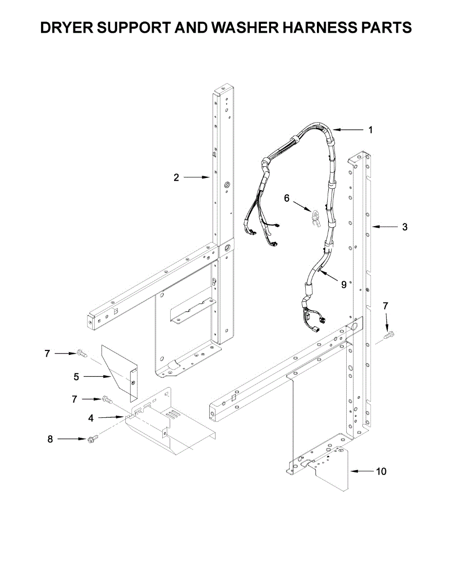 Parts for Whirlpool 7MWET4027HW0: Dryer Support And Washer Harness Parts