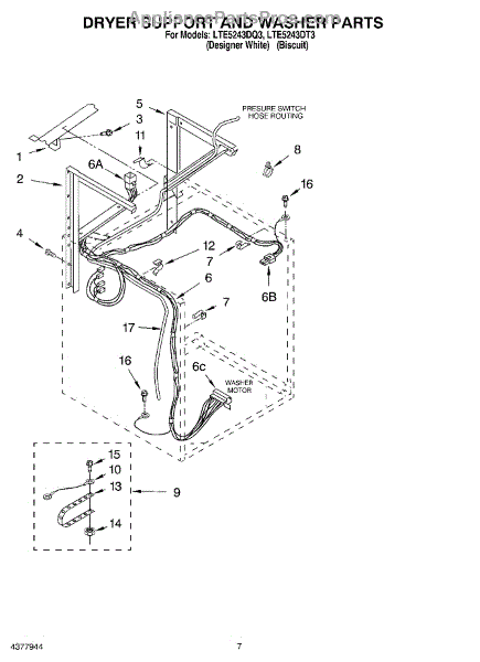 Parts for Whirlpool LTE5243DT3: 05 - Dryer Support And Washer Parts