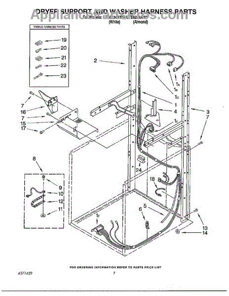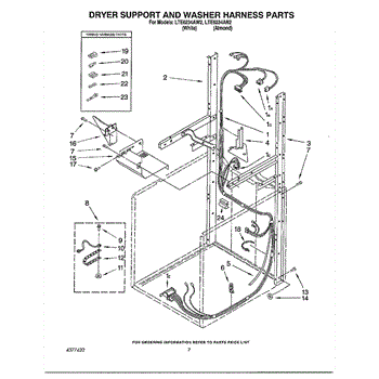 Parts for Whirlpool LTE6243AW2: Dryer Support And Washer Harness Parts