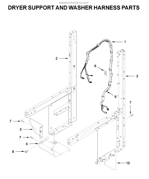 The Wire Harness is an OEM part for Whirlpool laundry centers. This wire harness is a component that routes power between electronic control boards and other internal electrical components. It allows power to flow correctly throughout the appliance, helping to operate features like timers, sensors, buttons, and more. Causes of a bad wire harness include worn insulation, cuts or breaks in wiring, or loose connections due to repeated movement and vibrations over time. Symptoms of a bad wire harness include: