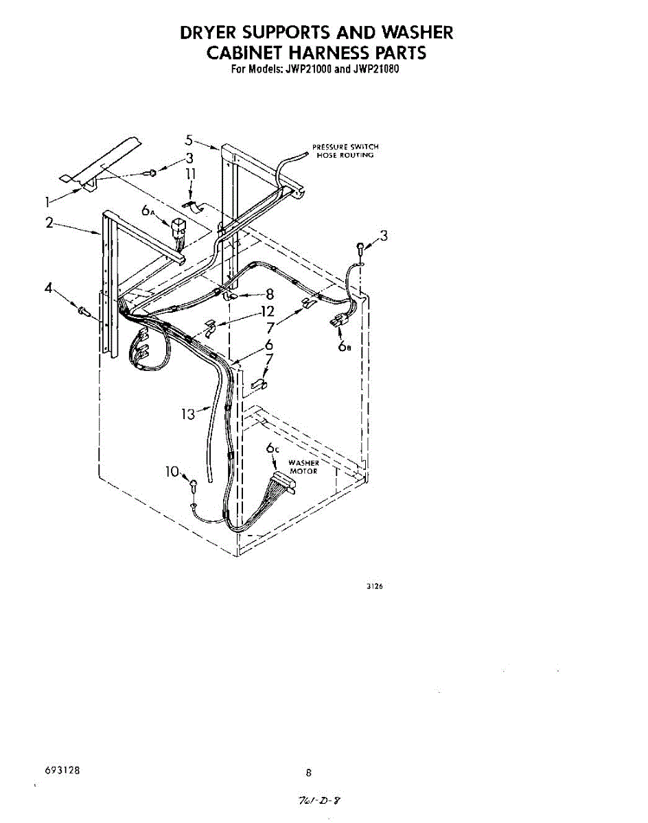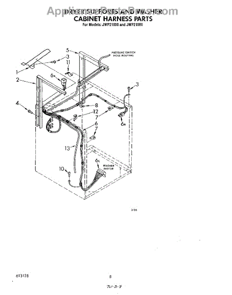 Parts for Whirlpool JWP21000: 06 - Dryer Supports And Washer Cabinet H Parts