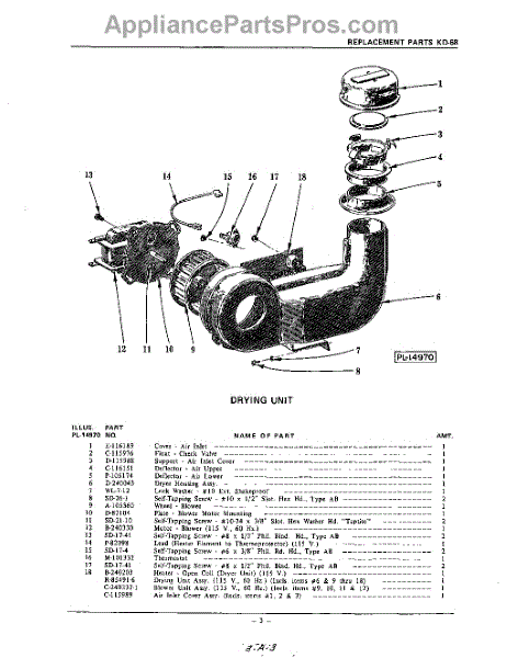 Parts for Kitchenaid KDD68: 03 - Drying Parts