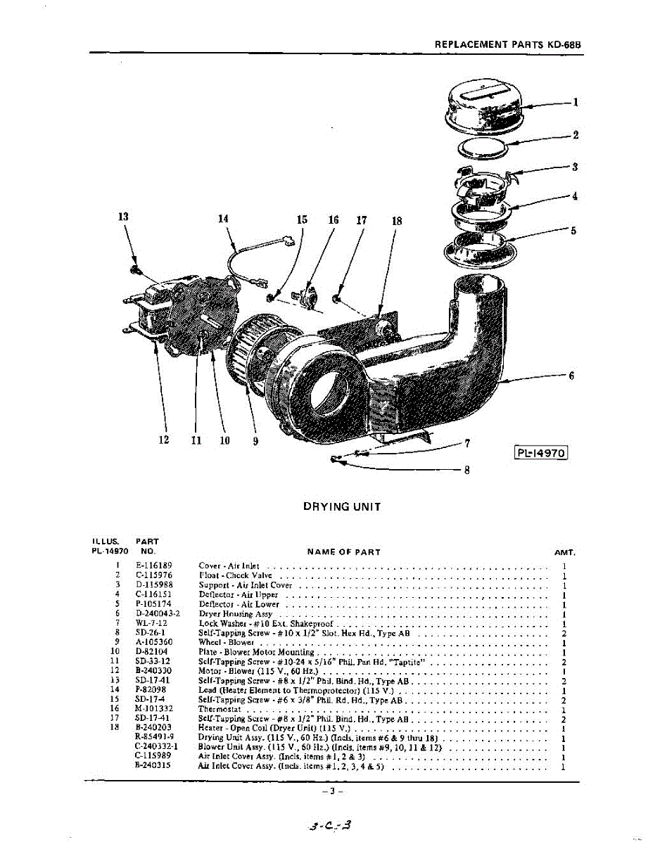 Parts for Kitchenaid KDR68B: 03 - Drying Parts