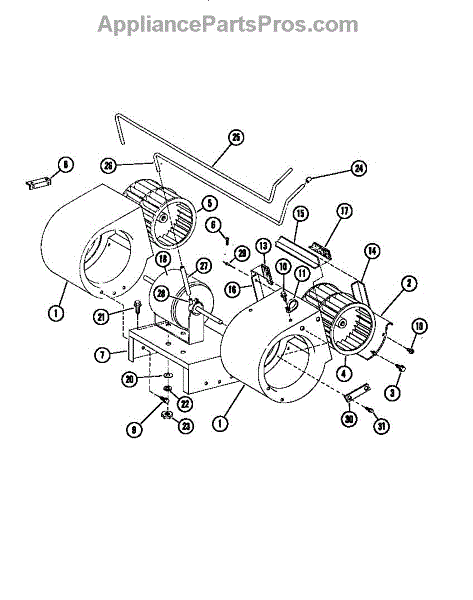 Parts for Amana EPH06000-1A/P67220-8C: Dual Blower Assembly Parts