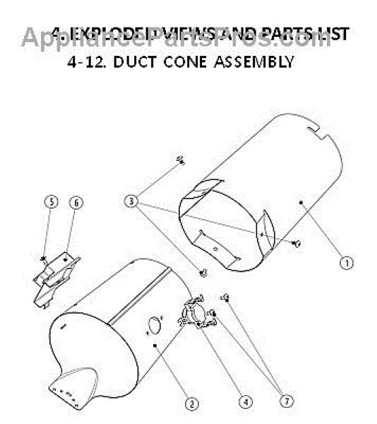 Parts for Kenmore 111.79142220 (11179142220, 111 79142220): Duct Cone Assy Parts