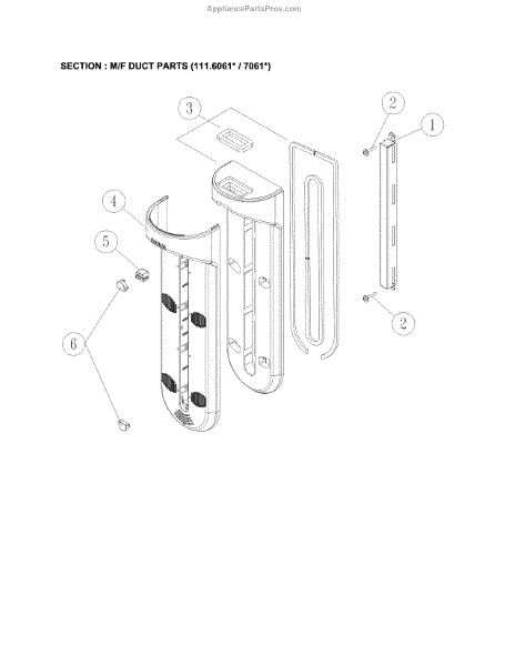 Parts for Kenmore 111.60612910 (11160612910, 111 60612910): M / F Duct Parts