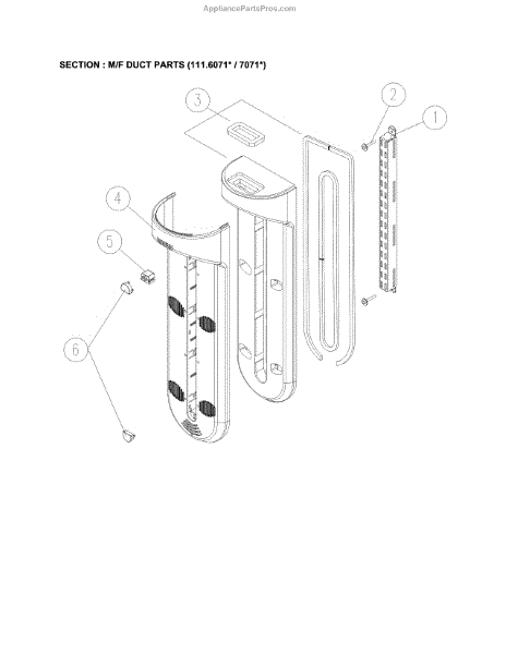 Parts for Kenmore 111.70715910 (11170715910, 111 70715910): M / F Duct Parts