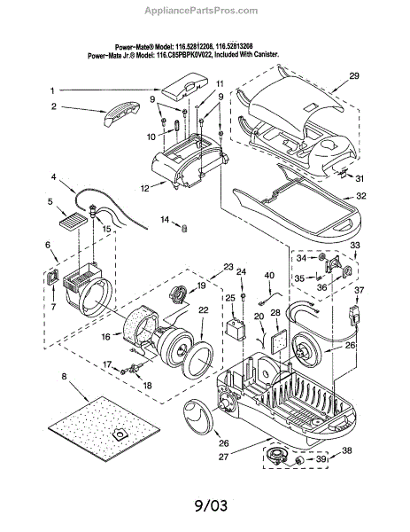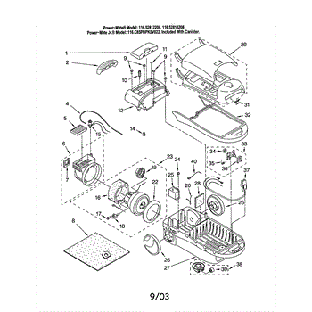 Parts for Kenmore 116.22812208 (11622812208, 116 22812208): Dust Box / Motor, Fan / Cover Parts