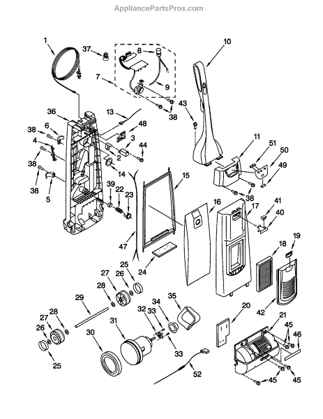 Parts for Kenmore 116.30712000 (11630712000, 116 30712000): Dust Compartment And Motor Parts