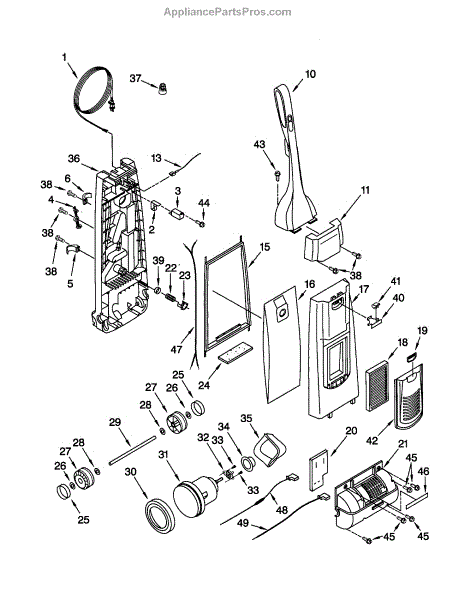 Parts for Kenmore 116.31212100 (11631212100, 116 31212100): Dust Compartment And Motor Parts