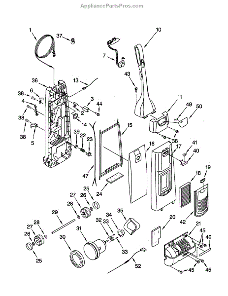Parts for Kenmore 116.31512100 (11631512100, 116 31512100): Dust Compartment And Motor Parts