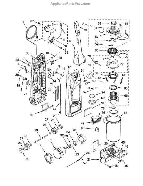 Parts for Kenmore 116.31675100 (11631675100, 116 31675100): Dust Compartment And Motor Parts