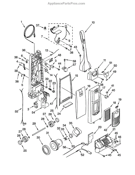 Parts for Kenmore 116.31912100 (11631912100, 116 31912100): Dust Compartment And Motor Parts