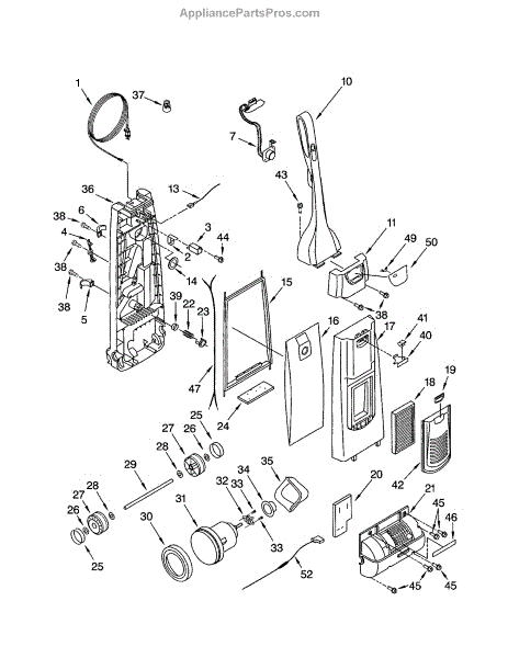 Parts for Kenmore 116.32612200 (11632612200, 116 32612200): Dust Compartment And Motor Parts
