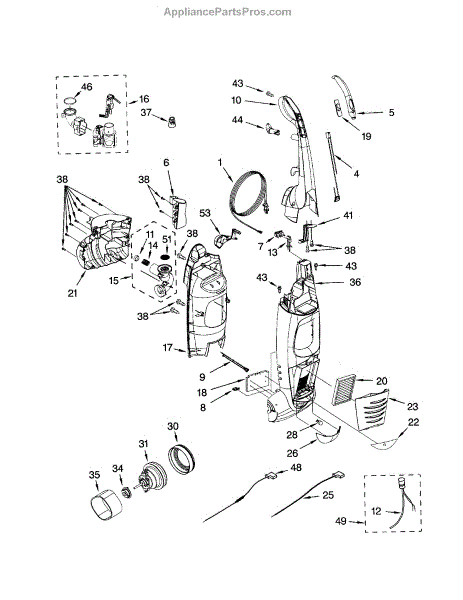 Parts for Kenmore 116.32735201 (11632735201, 116 32735201): Dust Compartment And Motor Parts