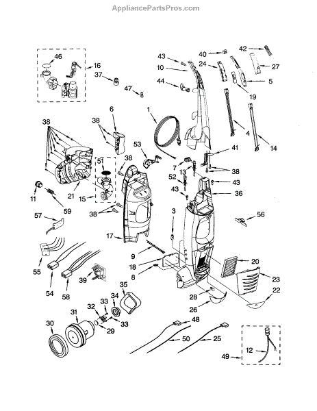 Parts for Kenmore 116.33921300 (11633921300, 116 33921300): Dust Compartment And Motor Parts