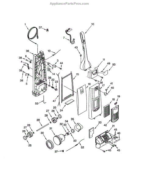 Parts for Kenmore 116.34613305 (11634613305, 116 34613305): Dust Compartment And Motor Parts