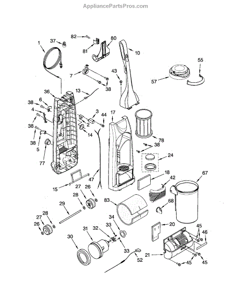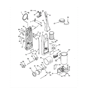 Parts for Kenmore 116.35726401 (11635726401, 116 35726401): Dust Compartment And Motor Parts